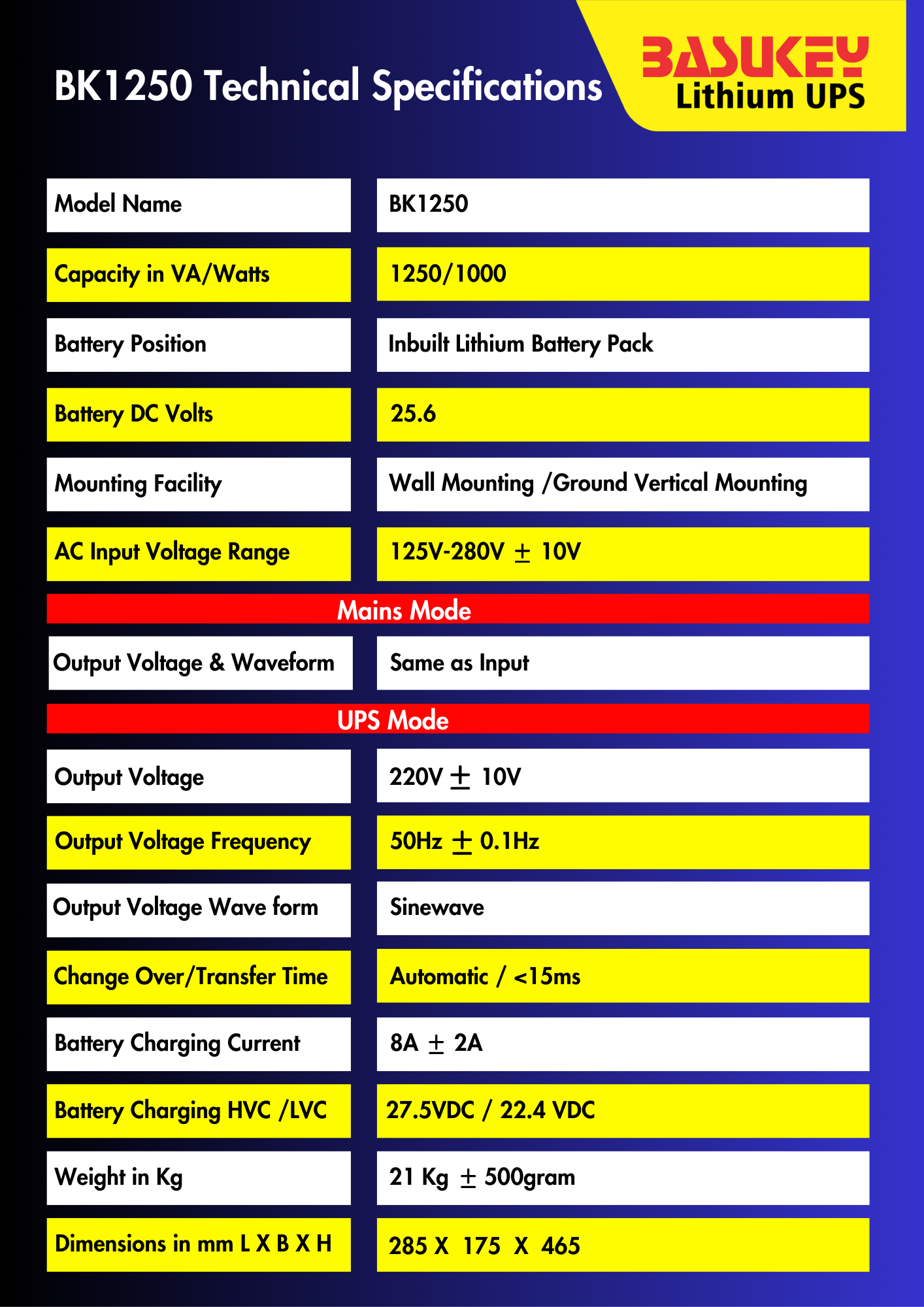Basukey Lithium UPS BK1250 Catalogue in PDF